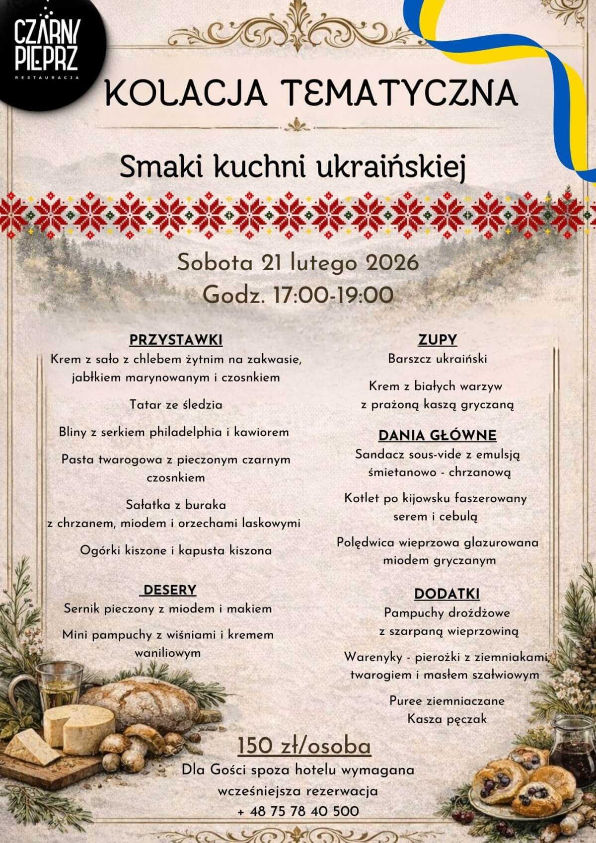 - Dla gości spoza hotelu 150 zł/os