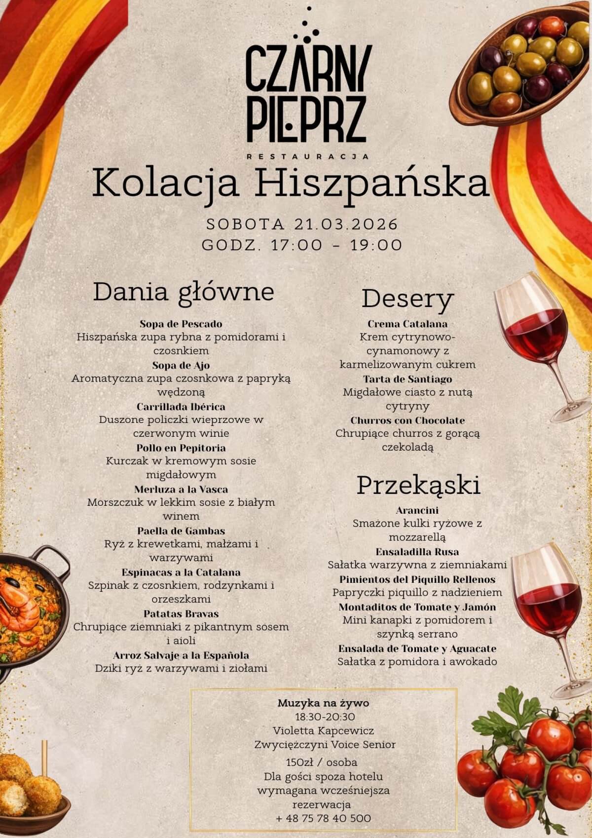 - Kolacja 17:00 - 19:00 | Koncert 18:30 - 20:30